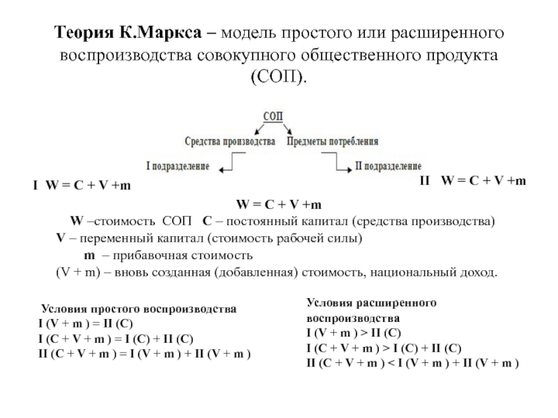 Слайд 8Теория К.Маркса – модель простого или расширенного воспроизводства совокупного общественного