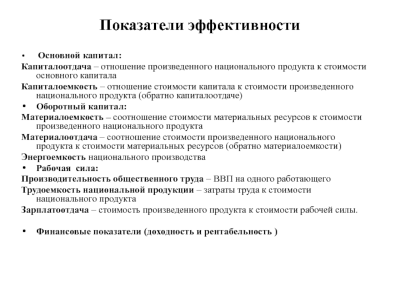 Затраты: капитальные вложения (инвестиции), объем применяемых материальных ресурсов, численность занятой рабочей силы.