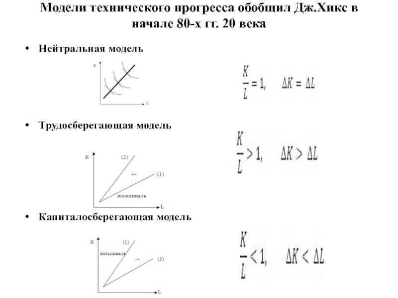 Слайд 29Модели технического прогресса обобщил Дж.Хикс в начале 80-х гг. 20