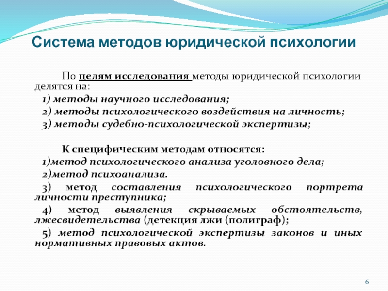 5) метод психологической экспертизы законов и иных нормативных правовых актов.