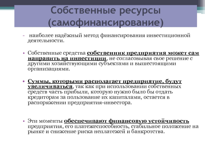 наиболее надёжный метод финансирования инвестиционной деятельности.