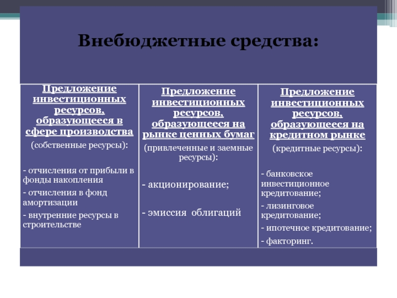 Оценка источников финансирования инвестиционной деятельности, предлагаемых рынком