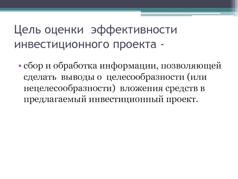 Слайд 49Цель оценки эффективности инвестиционного проекта -