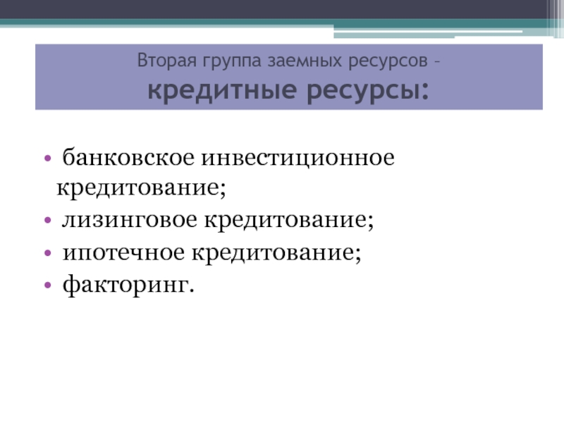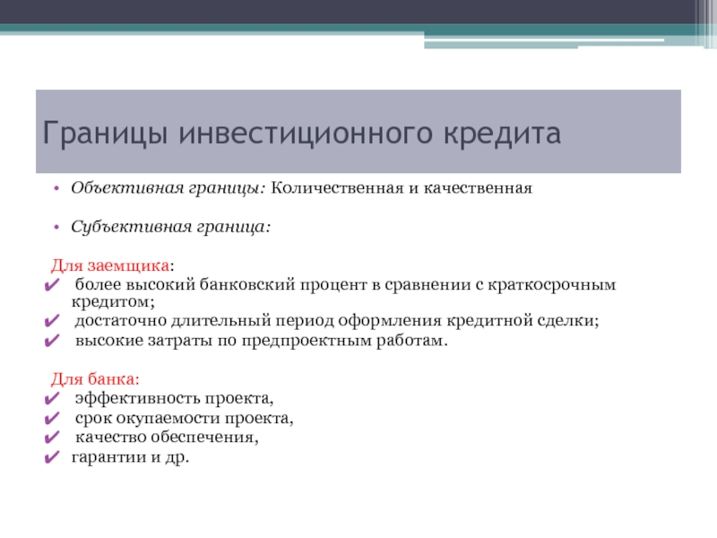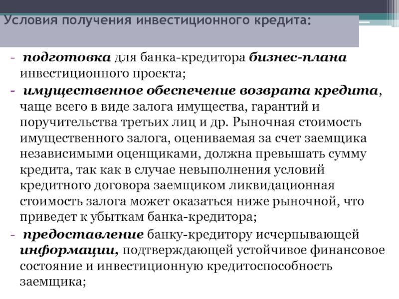 долгосрочные кредиты на покрытие инвестиционных затрат, объектом