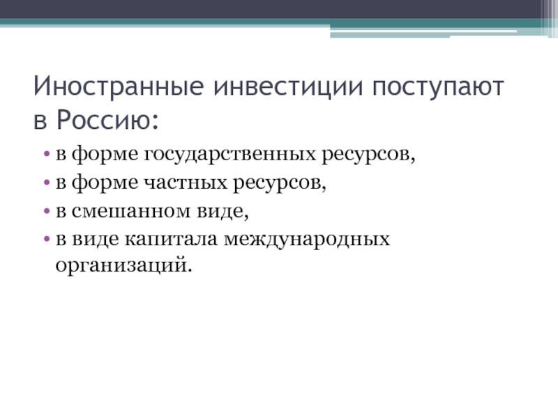 Слайд 45Иностранные инвестиции поступают в российскую экономику: