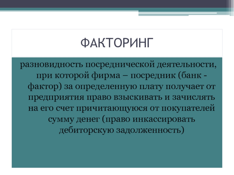 разновидность посреднической деятельности, при которой фирма – посредник (банк -
