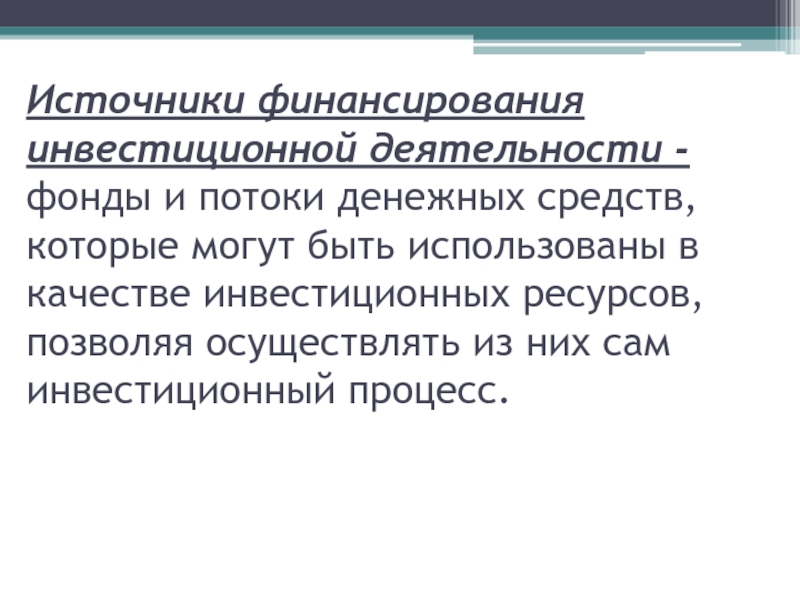 Слайд 2Источники финансирования инвестиционной деятельности - фонды и потоки денежных средств,