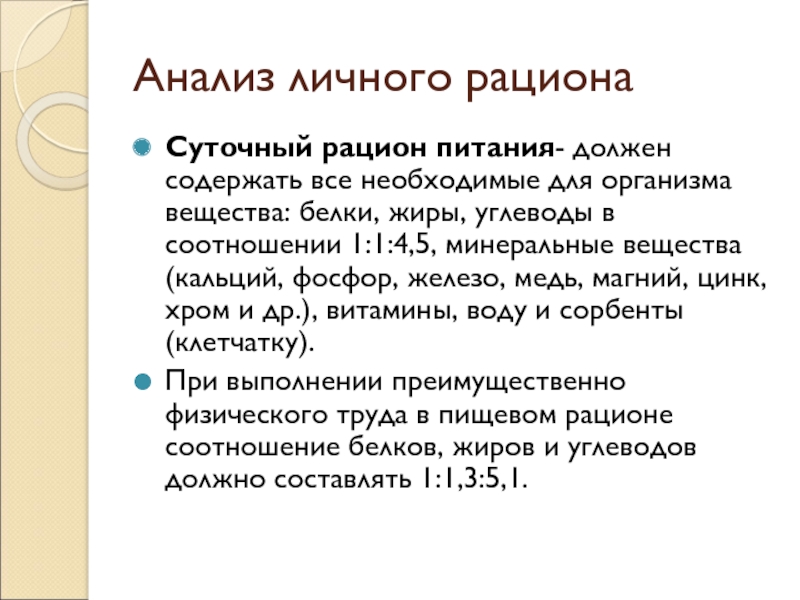 Слайд 9Анализ личного рациона