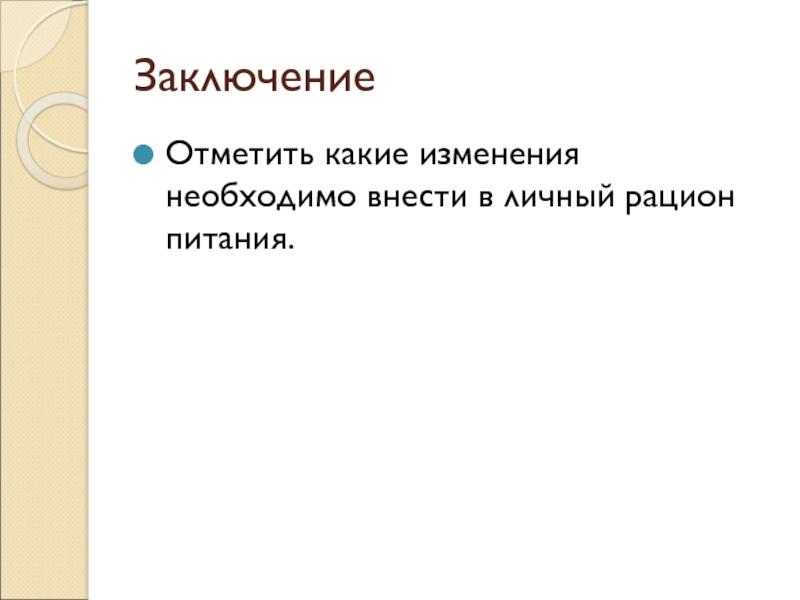 Отметить какие изменения необходимо внести в личный рацион питания.