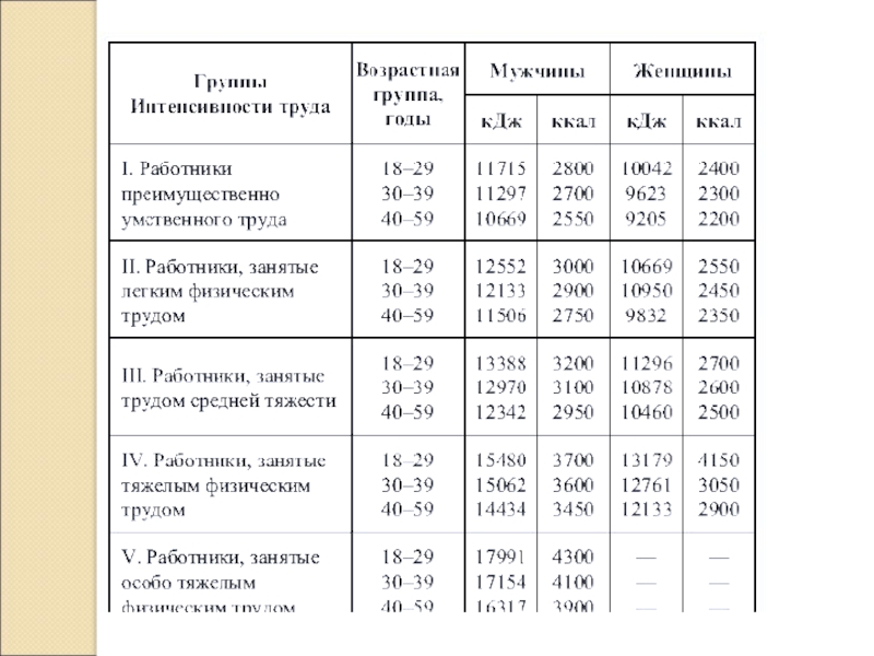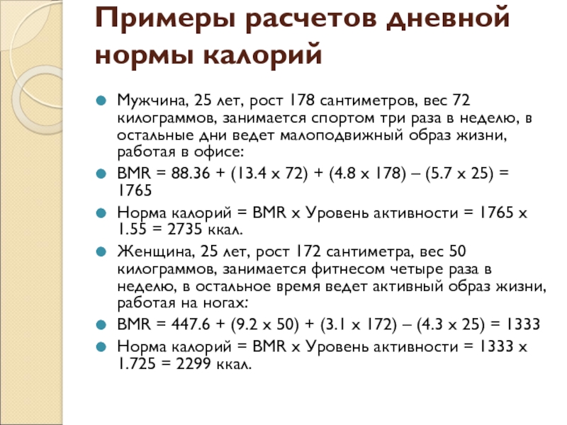 Слайд 5Примеры расчетов дневной нормы калорий