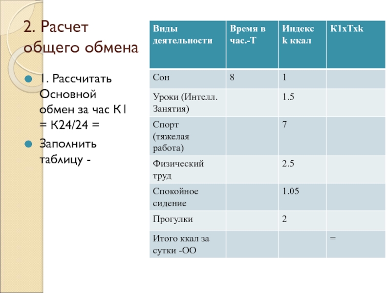 Слайд 32. Расчет общего обмена