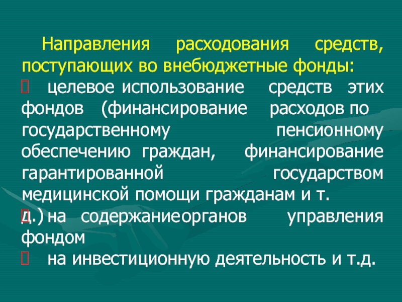 источники доходов, т.е. при функционировании внебюджетных фондов не применяется принцип общего (совокупного) покрытия расходов