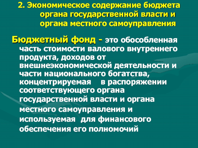 Слайд 62. Экономическое содержание бюджета органа государственной власти и органа местного