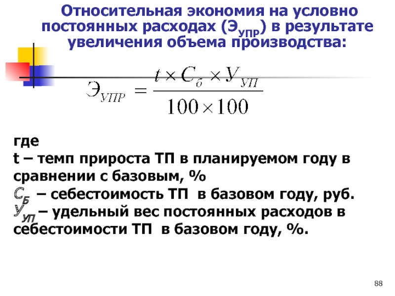 Слайд 88 Относительная экономия на условно постоянных расходах (ЭУПР) в результате