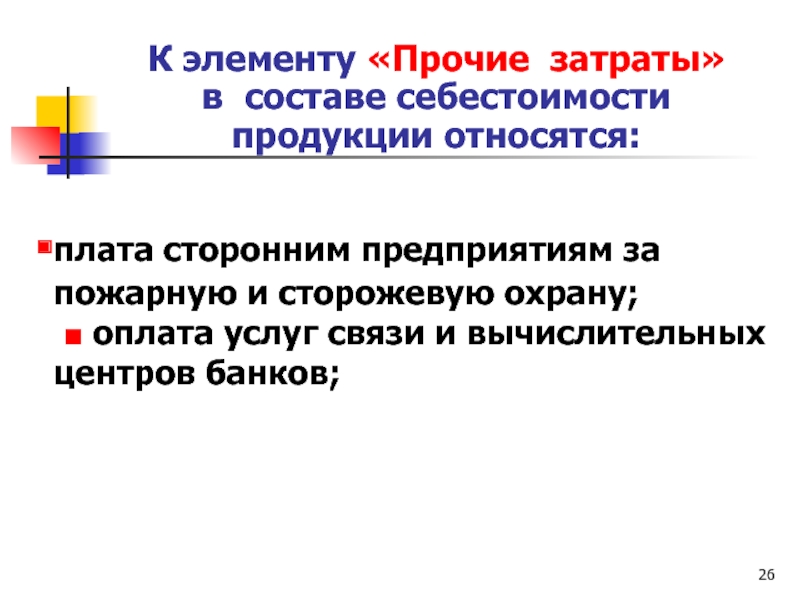 Слайд 26плата сторонним предприятиям за пожарную и сторожевую охрану;