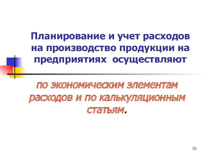 Слайд 16Планирование и учет расходов на производство продукции на предприятиях осуществляют