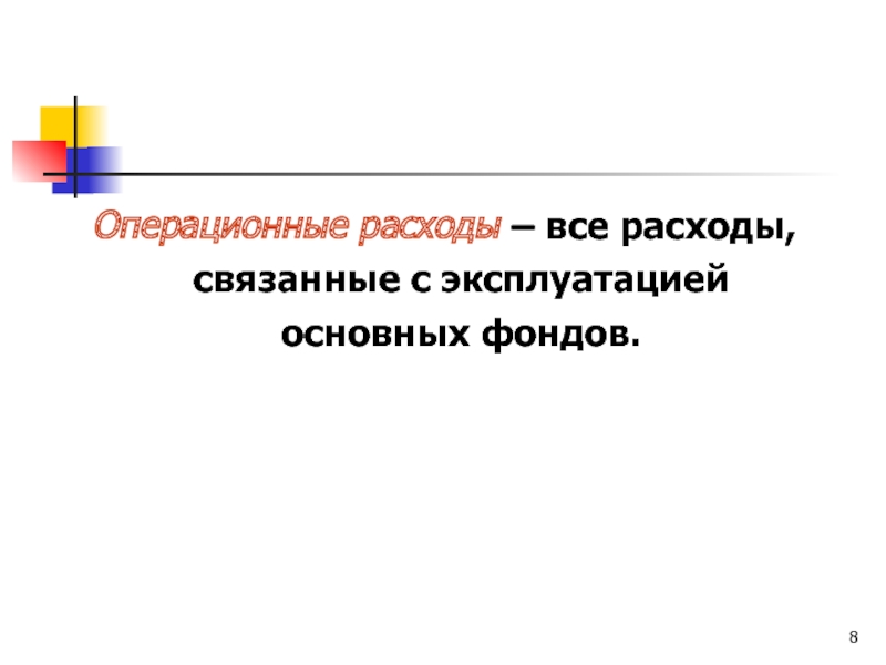 Слайд 8Операционные расходы – все расходы, связанные с эксплуатацией основных фондов.