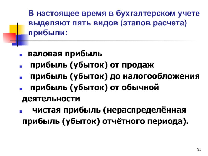 Слайд 93В настоящее время в бухгалтерском учете выделяют пять видов (этапов