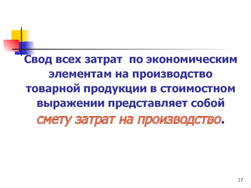 Слайд 17Свод всех затрат по экономическим элементам на производство товарной продукции