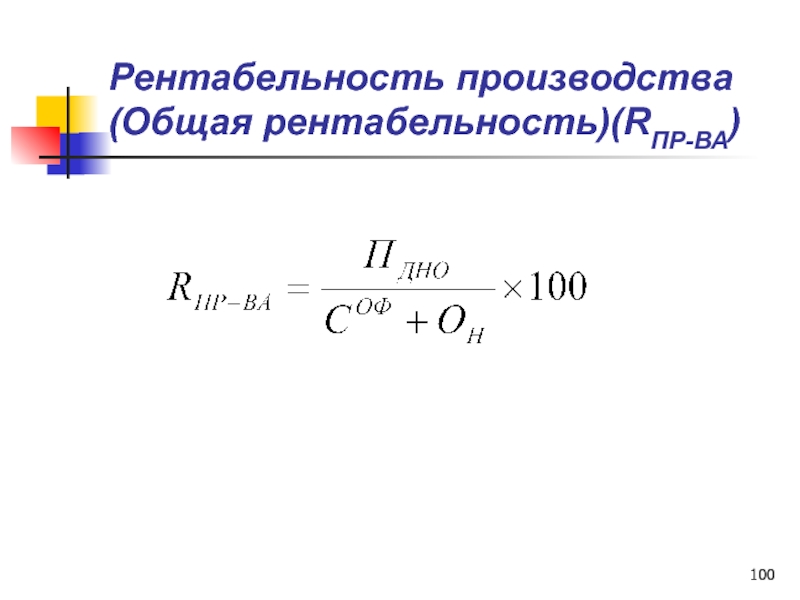 Слайд 100Рентабельность производства (Общая рентабельность)(RПР-ВА)