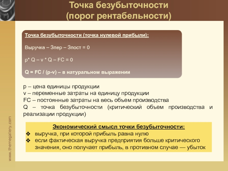Слайд 6Точка безубыточности