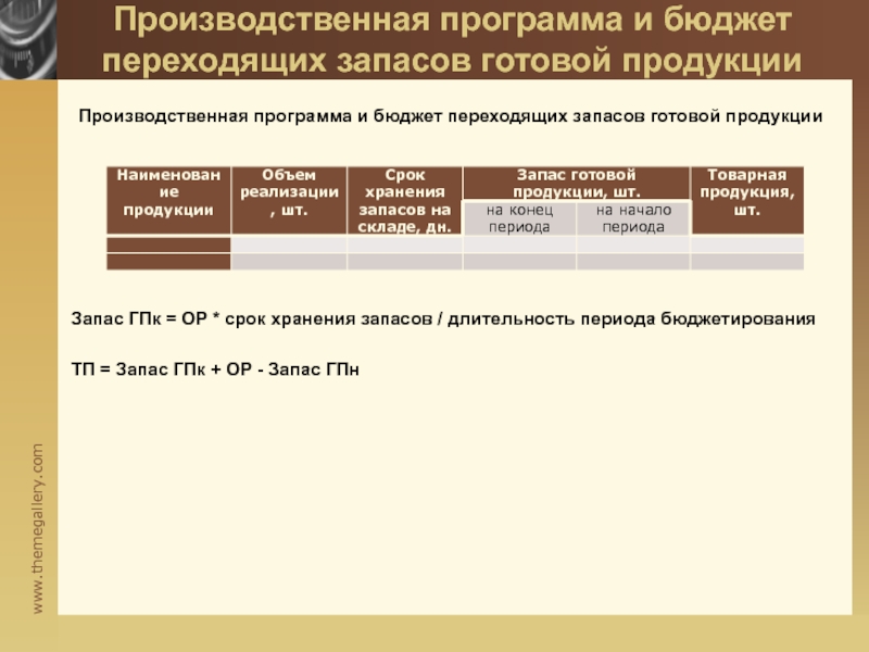 Слайд 21Бюджет производства (производственная программа) и бюджет переходящих запасов