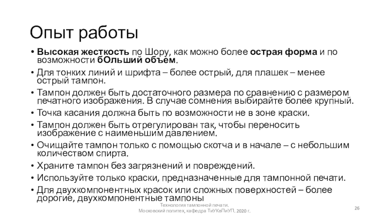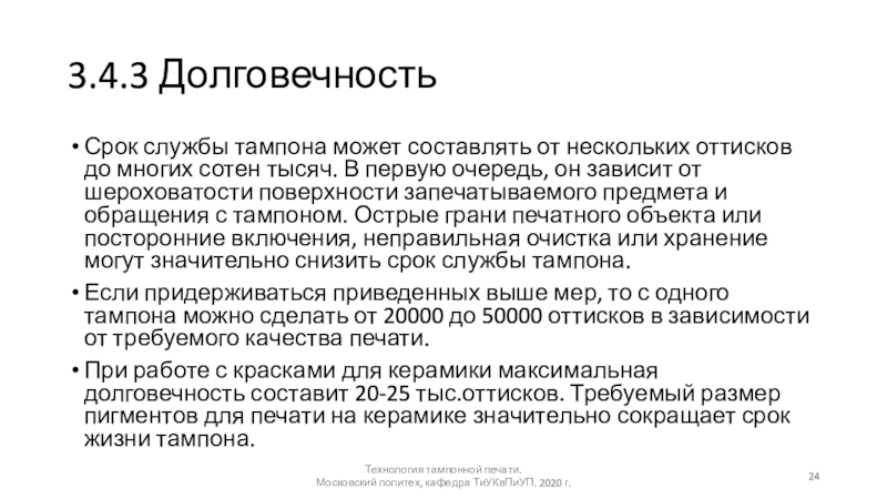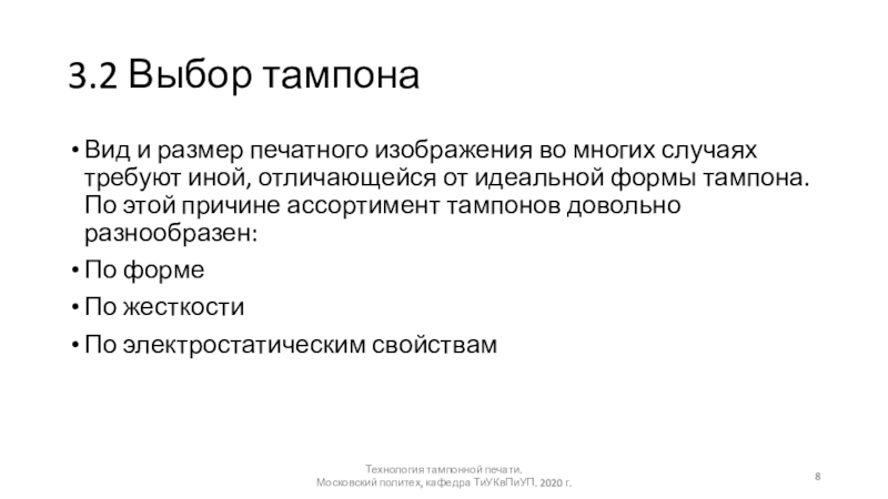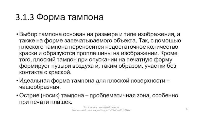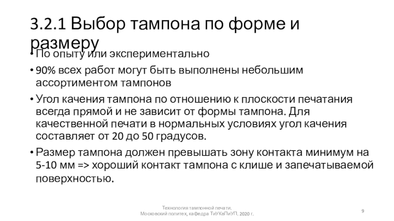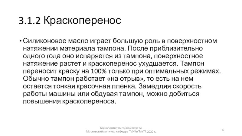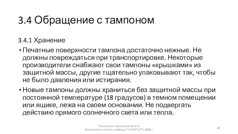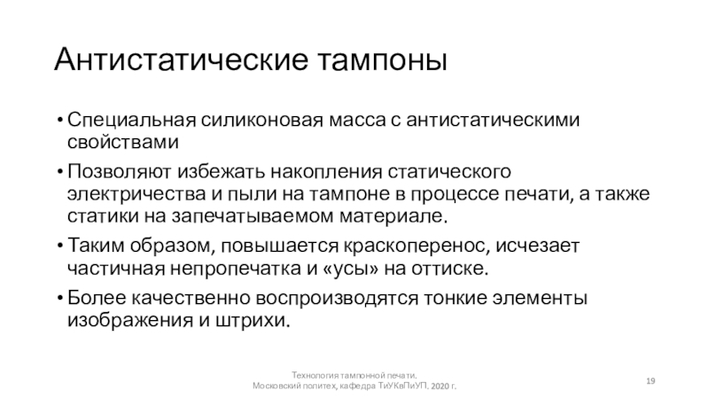 Технология тампонной печати. Московский политех, кафедра ТиУКвПиУП. 2020 г.