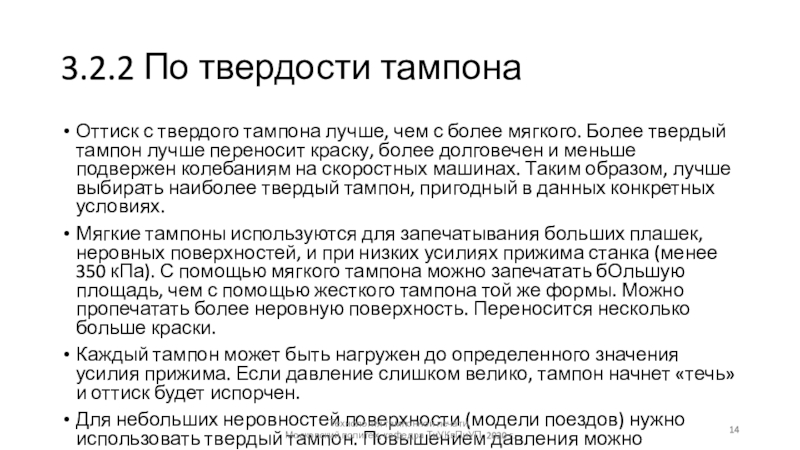 и силиконового масла. Количество силиконового масла зависит от желаемой жесткости тампона. Для визуального различия тампоны разной жесткости могут маркироваться разным цветом.Значение поверхностного натяжения силикона низко и находится между восприятием краски и её отталкиванием (в зависимости от степени высыхания краски), что позволяет осуществлять хороший краскоперенос.