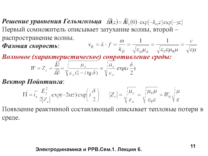 Слайд 11Электродинамика и РРВ.Сем.1. Лекция 6.