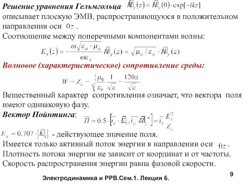 Слайд 9Электродинамика и РРВ.Сем.1. Лекция 6.