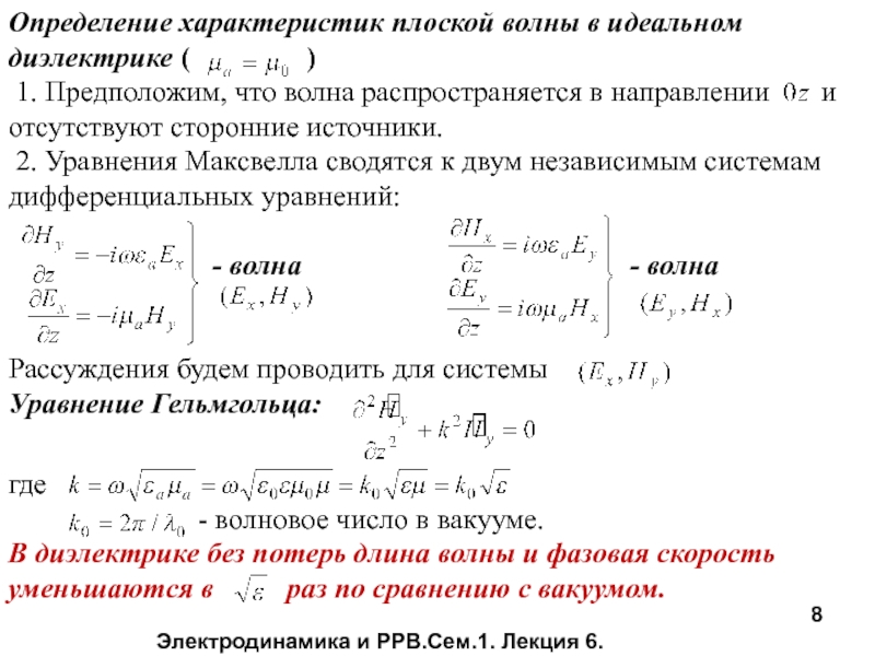Слайд 8Электродинамика и РРВ.Сем.1. Лекция 6.