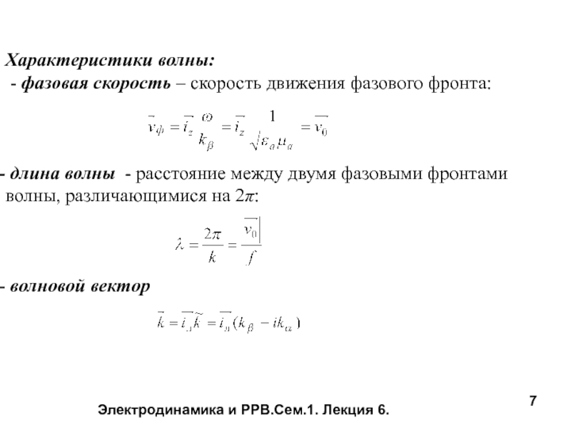 Слайд 7Электродинамика и РРВ.Сем.1. Лекция 6.