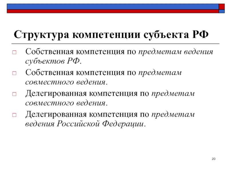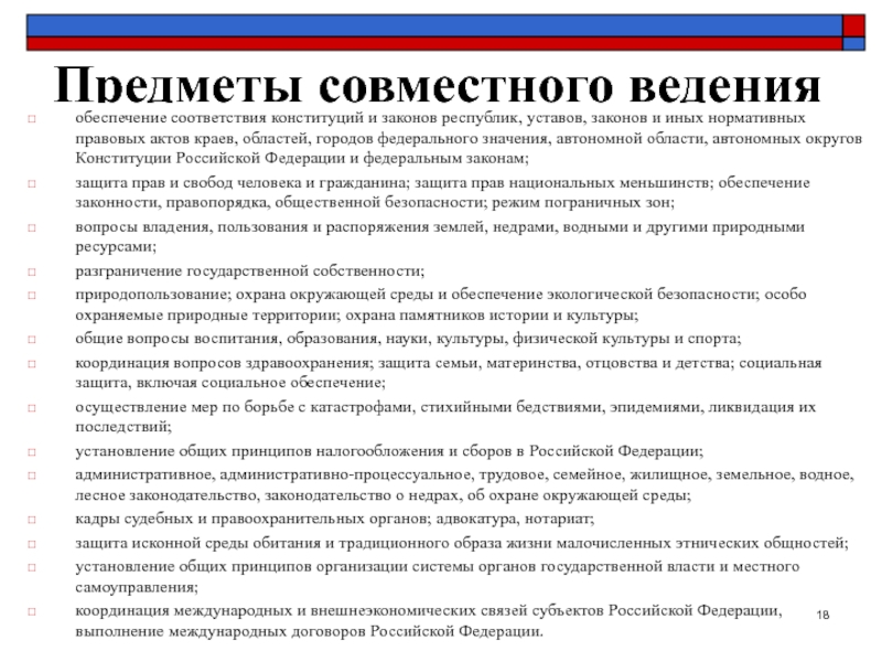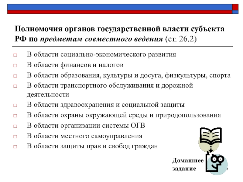 Слайд 21Полномочия органов государственной власти субъекта РФ по предметам совместного ведения