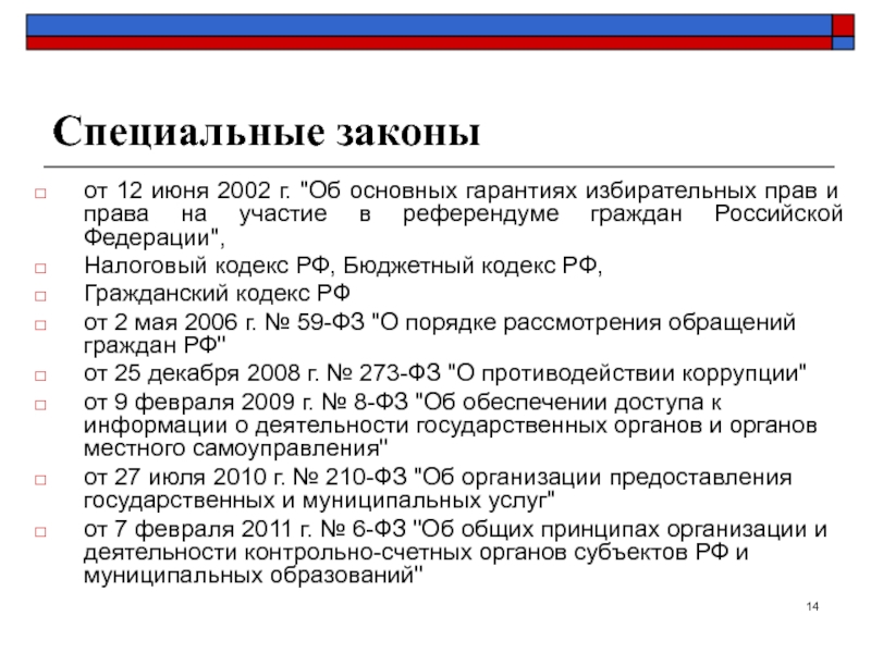 Слайд 14от 12 июня 2002 г. "Об основных гарантиях избирательных прав