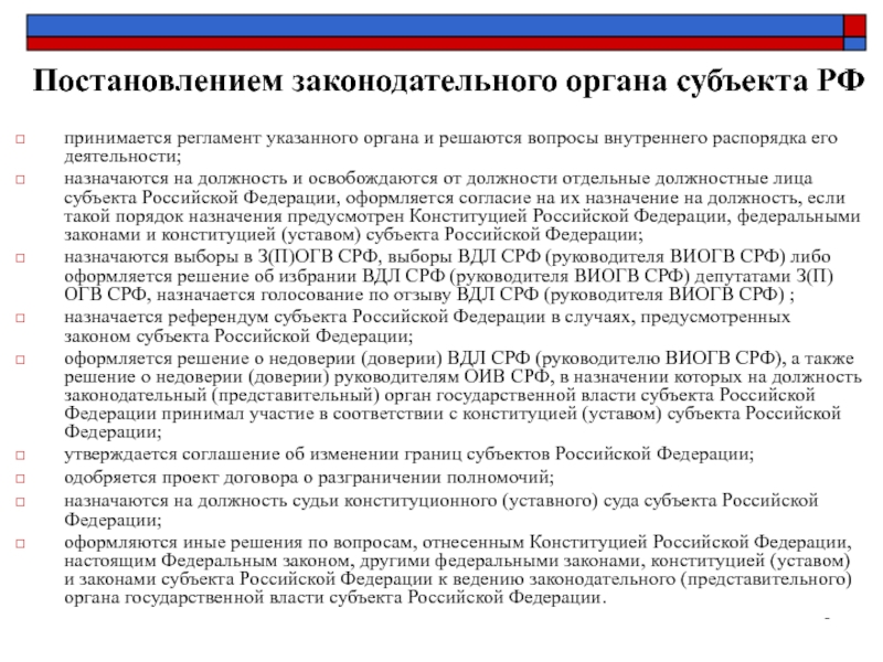 Слайд 8Постановлением законодательного органа субъекта РФ