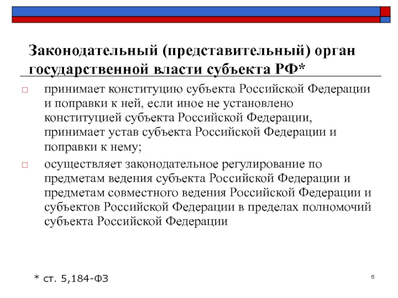 Слайд 6Законодательный (представительный) орган государственной власти субъекта РФ*