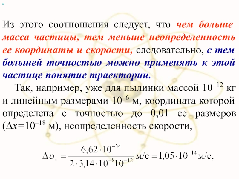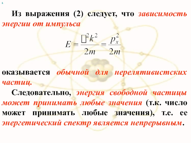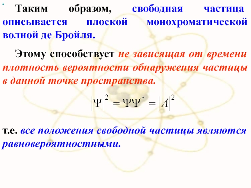 Слайд 7 Согласно квантовой механике, свободное движение частицы с массой