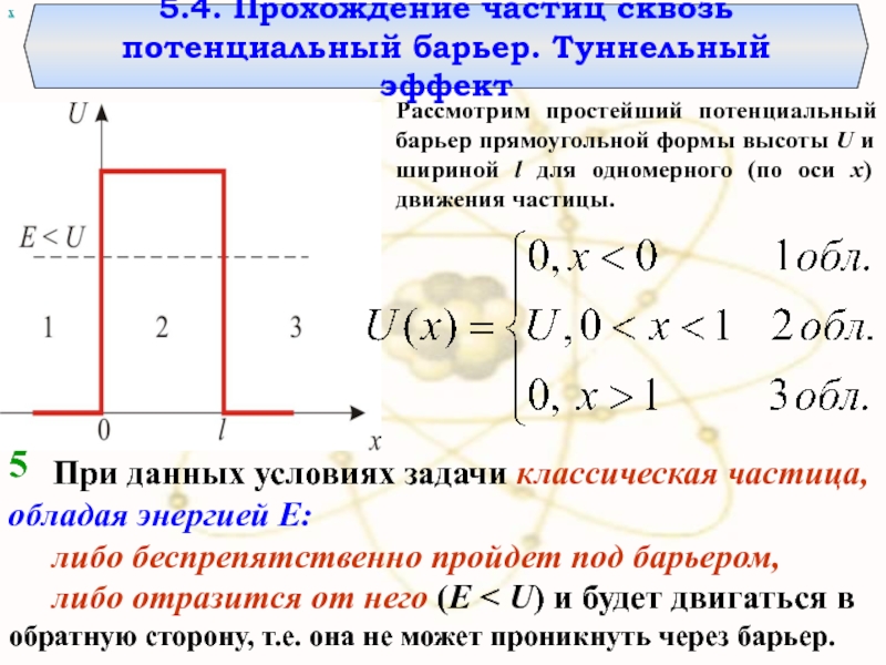 Для микрочастицы же, даже при E > U, имеется отличная от нуля возможность, что частица отразится от барьера и будет двигаться в обратную сторону.