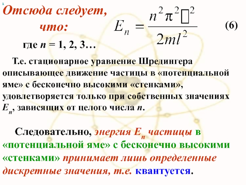 Такой вывод следует непосредственно из решения уравнения Шредингера, описывающего движение микрочастицы при данных условиях задачи.