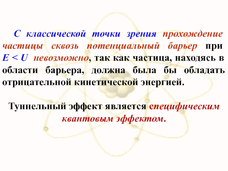 Слайд 101 С классической точки зрения прохождение частицы сквозь потенциальный барьер при
