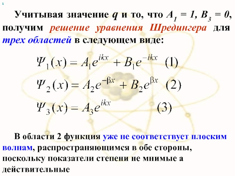 = 0, получим решение уравнения Шредингера для трех областей в