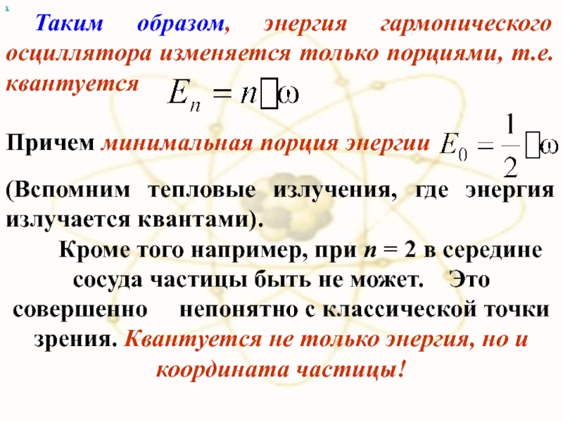 Таким образом, энергия гармонического осциллятора изменяется только порциями, т.е. квантуется