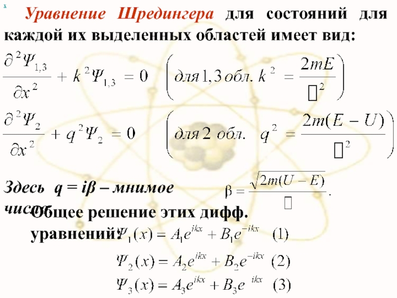 Уравнение Шредингера для состояний для каждой их выделенных областей имеет