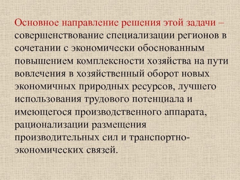 Слайд 5Основное направление решения этой задачи – совершенствование специализации регионов в