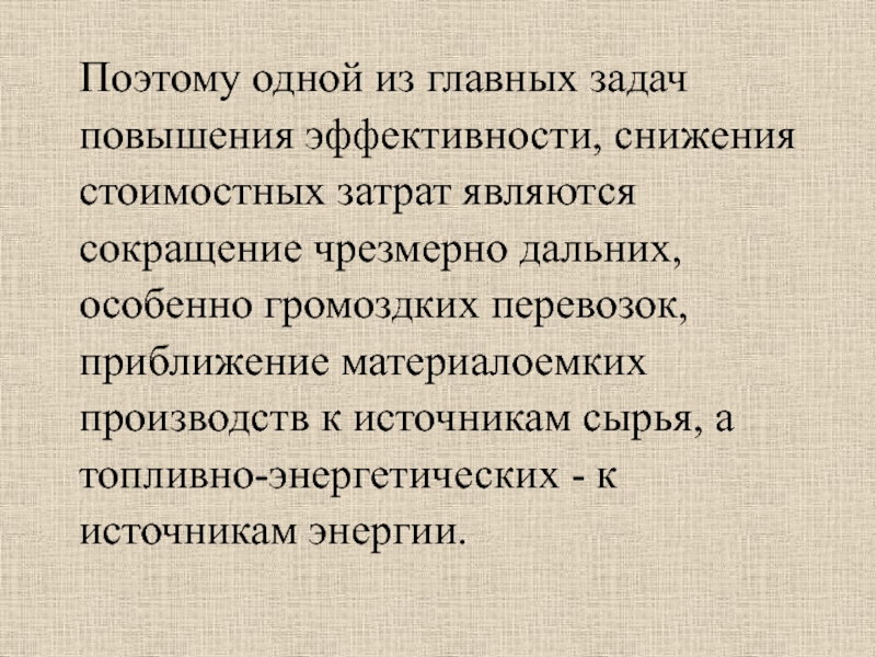являются сокращение чрезмерно дальних, особенно громоздких перевозок, приближение материалоемких производств