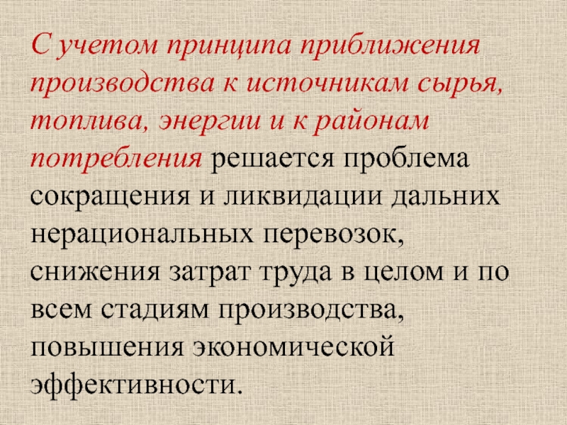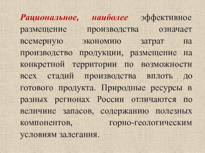 Слайд 7Рациональное, наиболее эффективное размещение производства означает всемерную экономию затрат на