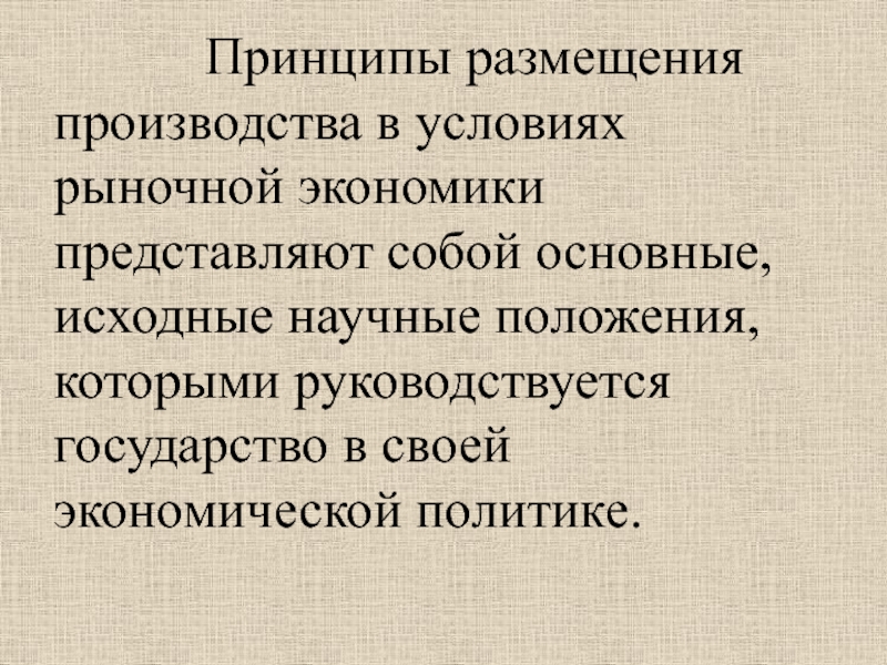 территорий является необходимым условием эффективного размещения производства в условиях рыночной