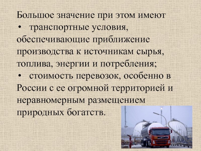 обосновании размещения производства важную роль играют и многообразные факторы, определяющие