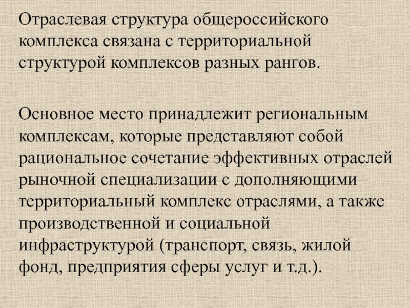 Слайд 14Отраслевая структура общероссийского комплекса связана с территориальной структурой комплексов разных
