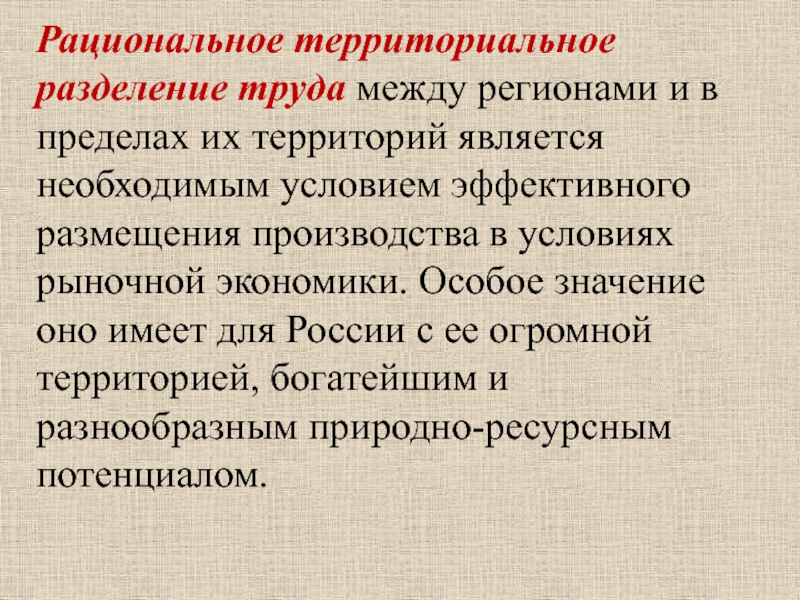 Слайд 15Рациональное территориальное разделение труда между регионами и в пределах их